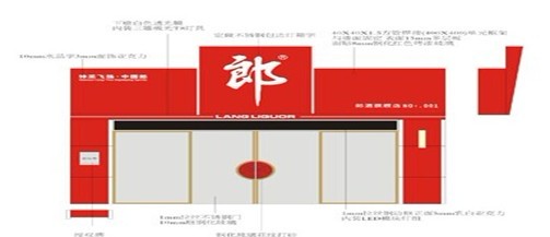 (圖二:郎酒形象店統(tǒng)一門面圖紙?jiān)O(shè)計(jì),包括字體所占面積、大小、用何種字體都有嚴(yán)格規(guī)定)