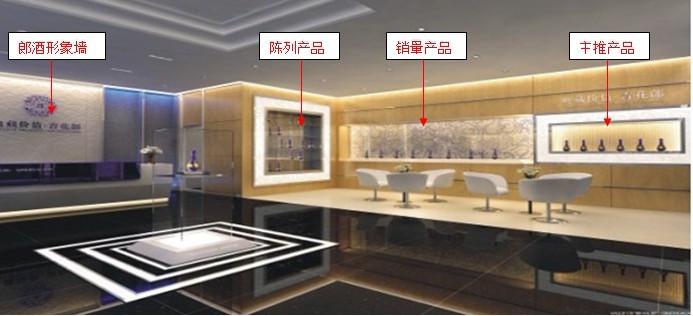 (圖三:郎酒旗艦店內(nèi)的各個(gè)位置布局)