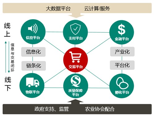 南方略項目組通過訪問國內(nèi)農(nóng)業(yè)領域頂尖學者,系統(tǒng)分析農(nóng)業(yè)產(chǎn)業(yè)問題、產(chǎn)業(yè)政策、消費市場及發(fā)展趨勢,結(jié)合清華同方以IT信息化為主的多方產(chǎn)業(yè)優(yōu)勢,認為同方只有通過互聯(lián)網(wǎng)思維多方連接,建立以生態(tài)農(nóng)產(chǎn)品B2B交易平臺為核心的開放式綜合性平臺,線上線下有機緊密結(jié)合,創(chuàng)新農(nóng)產(chǎn)品現(xiàn)代流通服務體系,為廣大新農(nóng)人及商家或消費者提供全方位服務,才能有效落地并打通整體產(chǎn)業(yè)鏈。