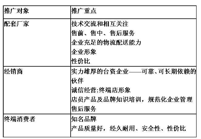 面對雨刷行業傳播手段比較單一,傳播停留在渠道內部,對消費者的傳播比較少,裝潢美容店,維修廠還有許多傳播空白點的缺點。我們根據公司的整體營銷策略,制定系統的宣傳促銷策略、計劃和實施措施。對于山多力的推廣宣傳我們使用公關手段加廣告的方法。
