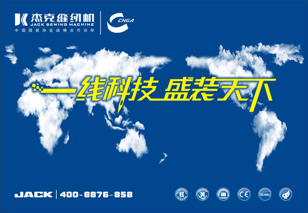 “一線科技”既表示一流、領先、頂尖、頂級,也表示一針一線的縫紉技術,不僅能闡釋縫制行業屬性,更能傳達杰克科技領先的意境;“盛裝天下”則既表示杰克縫紉機以完美的設計、精良的技術、不懈的追求成就頂級的服裝品牌,也與杰克“為客戶提供性價比最優的縫制設備和服務,為人類縫制新文化作出卓越貢獻”的企業使命完美吻合,杰克的持續發展離不開服裝行業的支持與發展,杰克也必將為服裝行業的發展作出自己的貢獻。