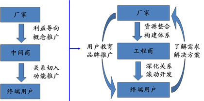 通過五大協(xié)同,夜太陽(yáng)有組織的整合價(jià)值鏈資源,實(shí)現(xiàn)由“廣撒網(wǎng),多捕魚”向“精耕細(xì)作”,由“工程商導(dǎo)向”向“用戶價(jià)值最大化”的兩大營(yíng)銷戰(zhàn)略性轉(zhuǎn)變。與工程商的關(guān)系也由傳統(tǒng)的純粹交易關(guān)系向互惠互利、共謀發(fā)展的合作伙伴關(guān)系演變。從夜太陽(yáng)來看,一方面通過樣板工程、展會(huì)等推廣手段在目標(biāo)群體心智中建立品牌印象,實(shí)行品牌拉動(dòng);一方面深度挖掘終端用戶需求信息,提升方案解決能力,掌控市場(chǎng)發(fā)展。而對(duì)工程商來說,有了企業(yè)的幫助,規(guī)避營(yíng)銷劣勢(shì),發(fā)揮關(guān)系優(yōu)勢(shì),在利益得到充分保障的前提下,也十分愿意與夜太陽(yáng)一起成長(zhǎng),并希望獲取更多的利益。雙方在利益、策略、資源、管理和關(guān)系等五大方面協(xié)同一致,且結(jié)成戰(zhàn)略合作伙伴,克服了雙方在渠道價(jià)值鏈上的內(nèi)耗,提升了渠道能力,擺脫了受價(jià)格控制的簡(jiǎn)單交易模式,夜太陽(yáng)正逐漸掌握市場(chǎng)的主動(dòng)權(quán),并將影響直接深入至終端用戶,深化與終端客戶的關(guān)系,實(shí)現(xiàn)品牌價(jià)值最大化。