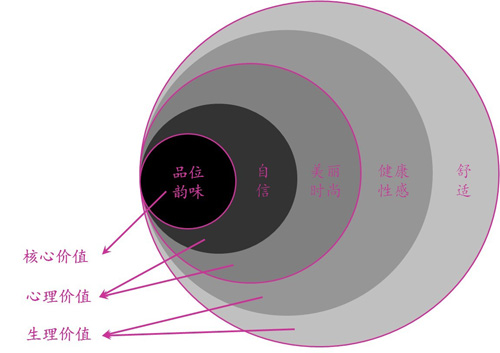 如果說定位“修身內(nèi)衣”是結(jié)合競爭對手、目標(biāo)群體和自身的資源及能力,找準(zhǔn)了可供挖掘差異化的爆破點(diǎn),那么接下來要做的便是深度挖掘衣馨品牌的核心價(jià)值,理順品牌屬性、利益和價(jià)值之間的邏輯關(guān)系,打造差異化、持續(xù)化的品牌價(jià)值體系。