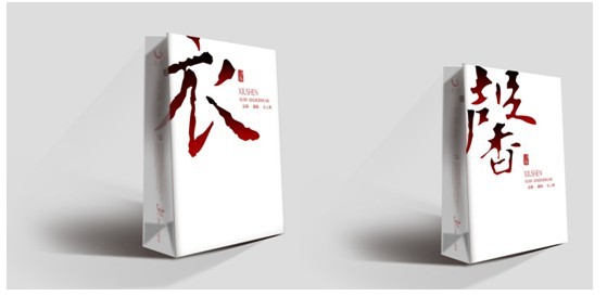 標(biāo)志圖形當(dāng)中這種根源于中華書法的“別致”,亦沿襲到了衣馨內(nèi)衣的購物袋設(shè)計(jì)之中(圖12、圖13):