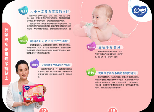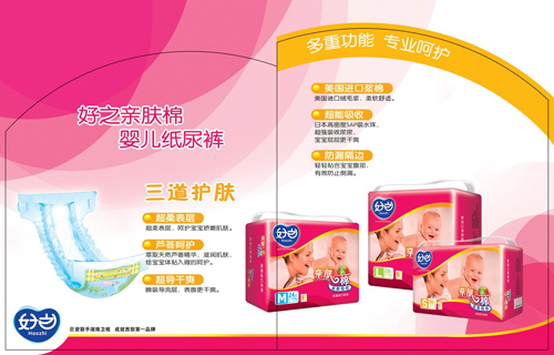 (2)四大系列:根據產品的特性和消費者的需求,好之品牌系統規劃了三大幼兒系列產品品牌以及成人系列: 嬰兒紙尿褲:好之親膚棉、好之薄能吸、好之超能吸、好之成人紙尿褲、好之成人紙尿片、好之成人護理墊。完善了產品結構。
