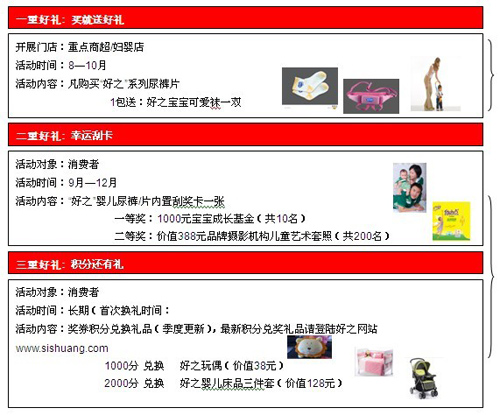 (1)為了促進產品在終端市場的動銷,展開了三重好禮賀新生的促銷活動: