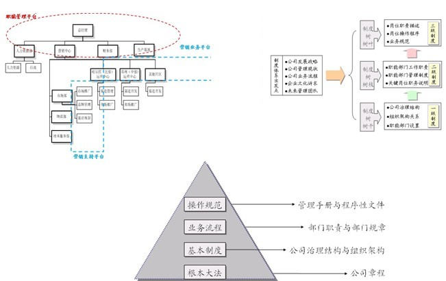 進行了公司總體運作框架梳理,并明確了組織成長的三部曲;進行核心組織的功能定位;規范企業內部制度系統;并建立了梯級構造奈安制度化基礎體系時間表。