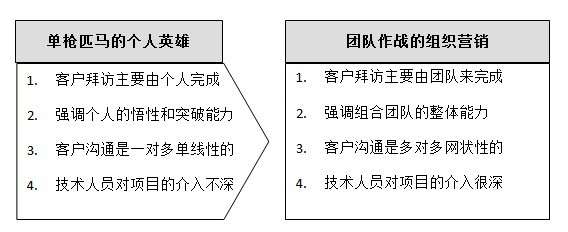 由單槍匹馬的個(gè)人英雄向團(tuán)隊(duì)作戰(zhàn)的組織營銷轉(zhuǎn)變。