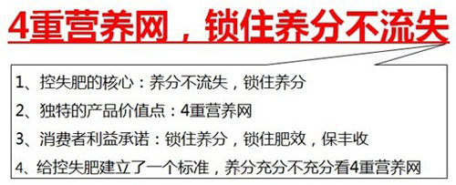 整套營銷內容:以產品USP為核心的紅四方控失肥價值體系