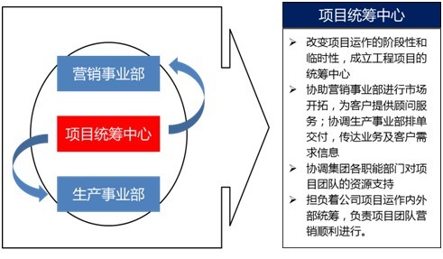 在組織上,環球之前的項目經理模式的運作對于營銷的支持不足,也無法實現項目制運作的基本要求;同時項目經理被設置在生產部門,受到生產的制約,無法發揮項目經理應有的統籌作用。因此,南方略顧問團隊為環球石材設立了獨立的項目統籌中心,實現各業務大區,營銷、項目、生產的三大平行職能。
