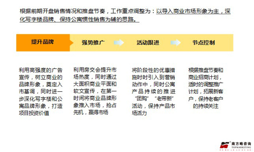 --商業(yè):擴(kuò)大商業(yè)品牌知名度,重新針對(duì)商業(yè)顧客開(kāi)展VIP卡蓄客工作,推出租售結(jié)合的營(yíng)銷方式;