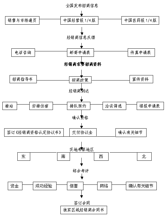 現(xiàn)在,生產(chǎn)企業(yè)需要招商,營銷企業(yè)也需要招商。可以說,招商是企業(yè)營銷過程中的關(guān)鍵環(huán)節(jié)之一,是企業(yè)將產(chǎn)品推向市場的必由之路。任何一種產(chǎn)品要想走向市場,必須要通過網(wǎng)絡(luò)渠道來傳遞出去。而這個銷售網(wǎng)絡(luò)的每一個點是由企業(yè)的經(jīng)銷商構(gòu)建成的,那么,經(jīng)銷商從何而來?這就是招商所要做的工作。