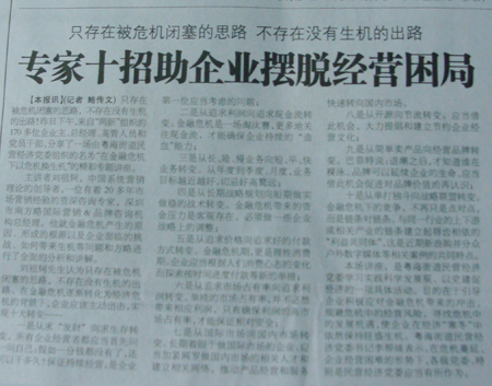 08年12月28日,《深圳特區(qū)報(bào)》報(bào)道劉祖軻“十招助企業(yè)擺脫經(jīng)營困局”。