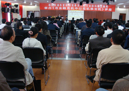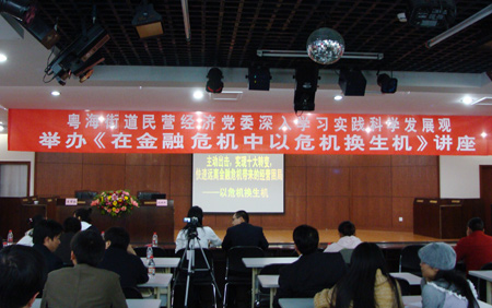 08年12月27日,劉祖軻在南山區(qū)進(jìn)行了主題為“主動(dòng)出擊,實(shí)現(xiàn)十大轉(zhuǎn)變快速遠(yuǎn)離金融危機(jī)帶來的經(jīng)營困局——以危機(jī)換生機(jī)”的講座。